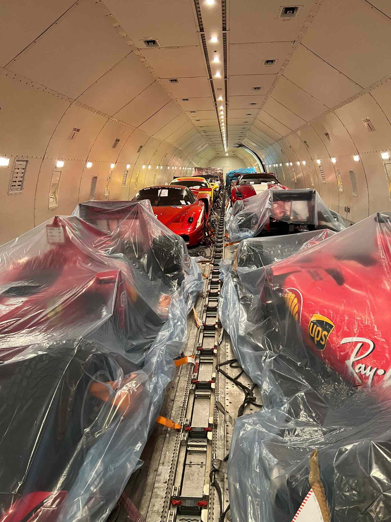 Il ‘carico speciale’ spedito dall’Italia a bordo di un volo charter cargo di Saudia Cargo era composto da oltre una decina di Ferrari, fra cui anche due monoposto da Formula 1.