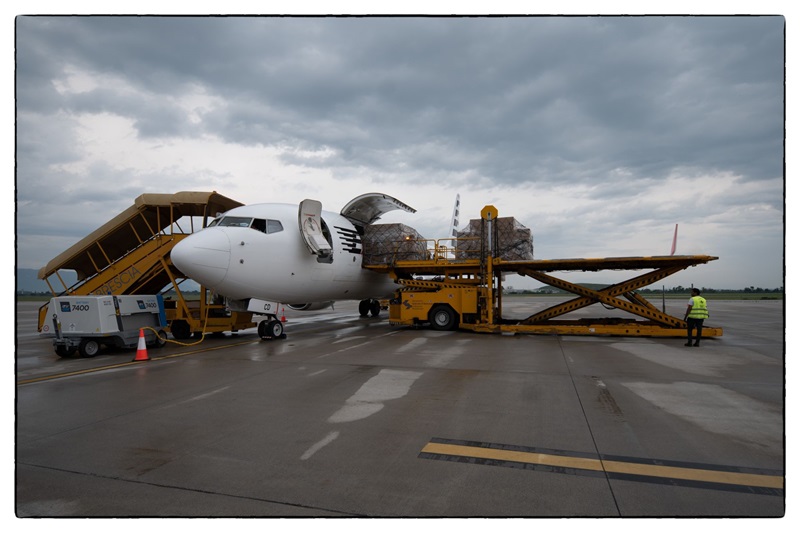 I prodotti, trasportati a bordo di un Boeing 737/800F di Express Air Cargo, sono stati poi riempiti di vaccini e distribuiti sul territorio del paese