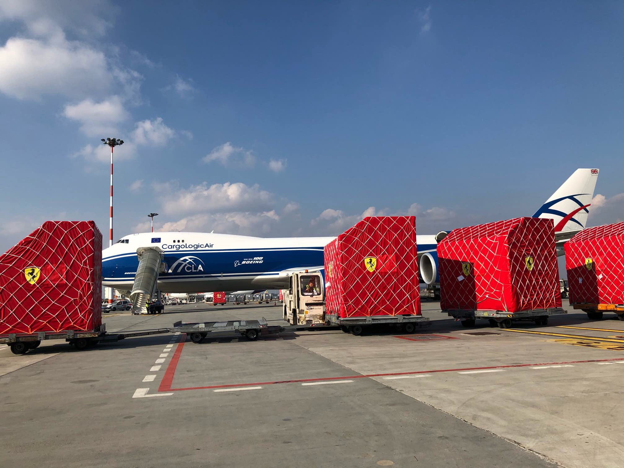 Nelle giornate di venerdì 8 e sabato 9 marzo la cargo city dell’aeroporto di Malpensa assomigliava molto al paddock di un circuito di formula 1. Non sono infatti passati inosservati i pallet aerei che riportavano i colori e i marchi delle scuderie Ferrari e RedBull destinati a viaggiare dall’Italia verso l’Australia. Il punto di destinazione finale è infatti il circuito automobilistico di Melbourne, sede del primo Gran Premio del campionato 2019 di Formula 1 che andrà in scena domenica 17 marzo, con le prime prove libere che inizieranno venerdì 15.
