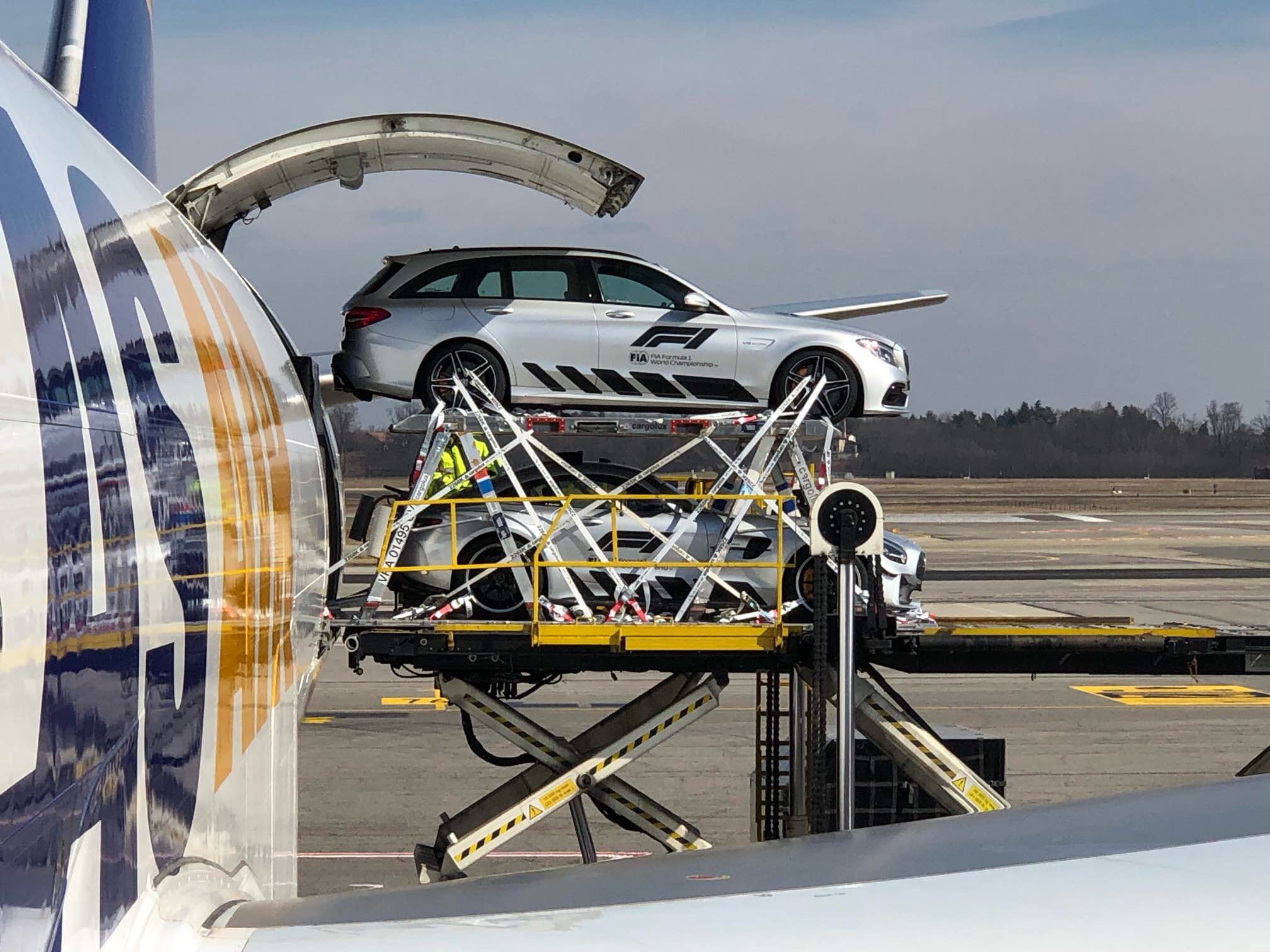 In totale la spedizione è composta da 91.300 kg di merce rappresentata da attrezzature e materiale tecnico, comprese le monoposto da gara (accuratamente imballate e ‘confezionate’) e anche quattro safety car.
