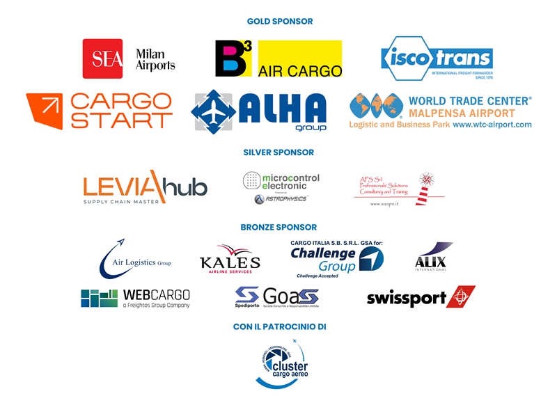 Ad oggi sono già sette le società che hanno deciso di supportare l’evento in qualità di sponsor. CargoStart, Iscotrans, Alha e Wtc Malpensa con una partecipazione ‘Gold’, cui si affiancano MIcrocontrol e Leviahub (Silver) e Alix International (Bronze).